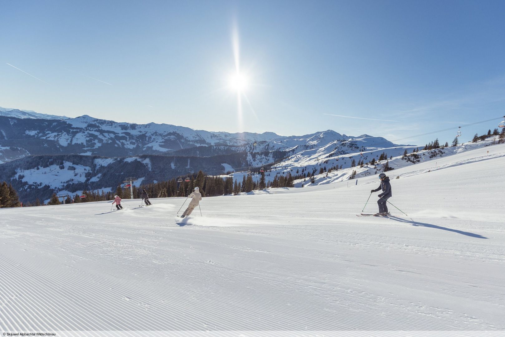 Díky spojení lyžařských oblastí Wildschönau a Alpbachtal s lanovkou postavenou v roce 2012 nabízí skipas "Ski Juwel Alpbachtal Wildschönau" neuvěřitelných 113 kilometrů sjezdovek včetně lyžařských tras. Zahrnuje lyžařské oblasti Markbachjoch/Lanerköpfl, Oberau, Schatzberg, Kramsach, Reitherkogel a Wiedersbergerhorn. Lyžařskou oblast obsluhuje přibližně 45 vleků v nadmořské výšce od 830 do 2 030 metrů. Rozmanité sjezdovky všech stupňů obtížnosti zaručují, že si na své přijdou všichni od začátečníků až po experty. Děti jsou v dětském klubu Bobo v dobrých rukou! Schatzberg a Reitherkogel jsou obzvláště vhodné pro rodiny a rekreační lyžaře. Ambiciózní lyžaři si naopak zamilují sjezdovky na severních svazích Markbachjoch a Lanerköpfl, stejně jako různé oblasti pro hluboký sníh a freeride s celkem 16 km značených lyžařských tras. Na různé sjezdovky se snadno dostanete bezplatným skibusem. Pro freestylisty je připraven snowpark na Wiedersberger Horn a funpark na Schatzbergu, které nabízejí spoustu zábavy a akce. K 10. výročí Ski Juwel Alpbachtal Wildschönau byla otevřena nová lanovka Hornbahn 2000, která vás za necelé 4 minuty vyveze na nejvyšší bod lyžařské oblasti. Horská stanice lanovky Hornbahn 2000 je také skutečnou atrakcí: 360° vyhlídka "Top of Alpbachtal" nabízí jedinečný panoramatický výhled na tyrolské hory. Sdílet nejnovější fotografie se svými blízkými nebo se sejít na après-ski? Žádný problém ve 20 hotzónách rozmístěných po celém lyžařském areálu. Můžete zde zdarma využívat Wi-Fi. Vylepšení "Super Ski Card" (viz lyžařský region) nabízí ještě více lyžařské zábavy: S tímto skipasem můžete zažít neomezenou lyžařskou zábavu ve 23 lyžařských regionech v Tyrolsku a Salcbursku s 946 vleky na přibližně 2840 kilometrech sjezdovek!