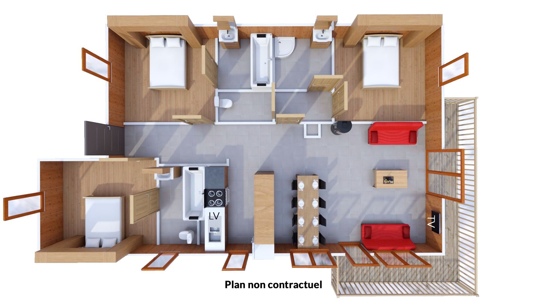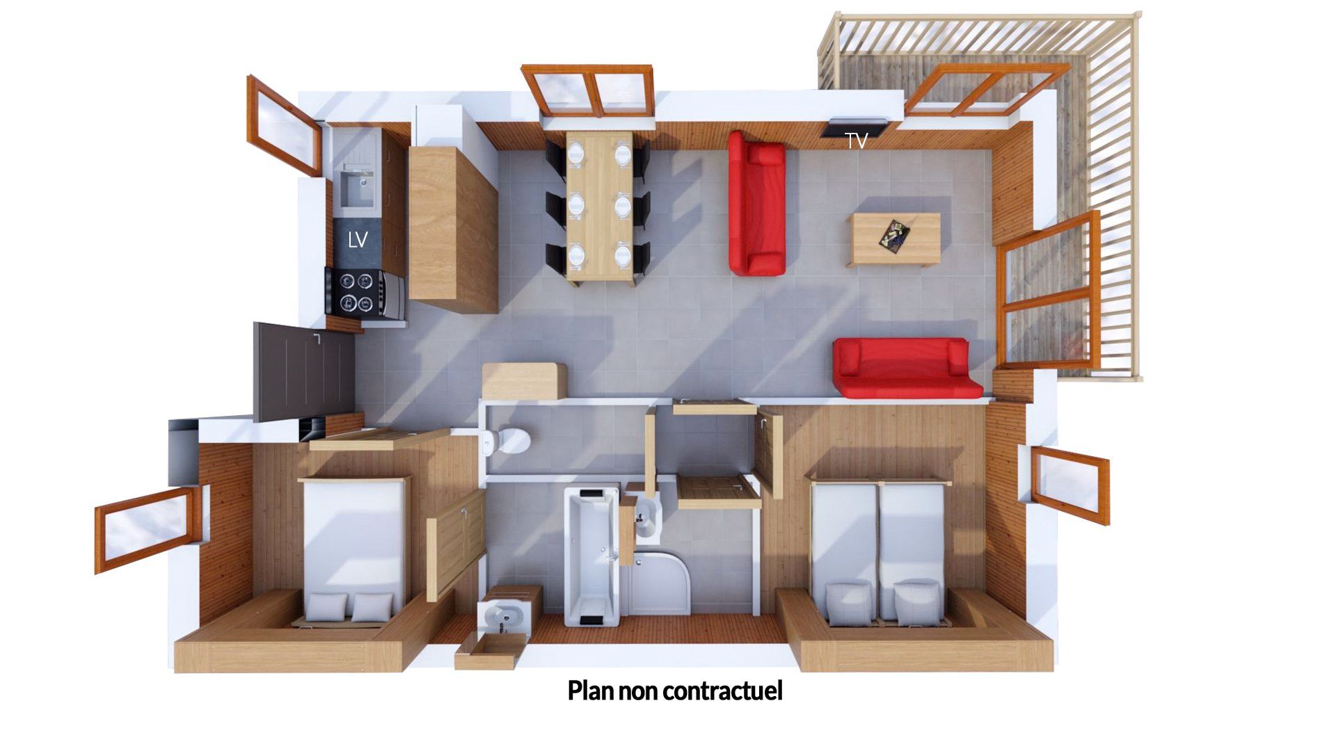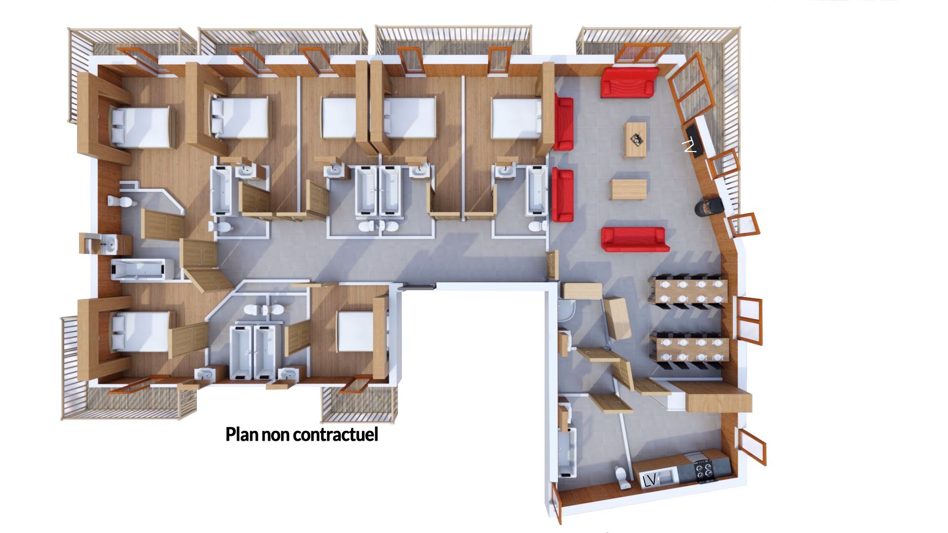 Poloha Útulný apartmánový dům Les Balcons de Val Cenis Village se nachází přímo v centru Val Cenis-Lanslevillard v nadmořské výšce cca 1 500 m. Přístup do lyžařského střediska je možný lanovkou "Val Cenis Le Haut", která je vzdálená asi 500 m. Milovníci alpského lyžování najdou sjezdovky téměř na dosah ruky. První obchody, kavárny a restaurace jsou hned vedle ubytování. Vybavení K vybavení tohoto komfortního ubytování patří recepce, Wi-Fi a úschovna zavazadel. Své zimní sportovní vybavení si můžete uložit v úschovně lyží/snowboardů. Na místě je k dispozici parkovací garáž (za popl.) a dobíjecí stanice pro e-auto (za popl.) - dle dostupnosti. Wellness Wellness zařízení sousedního ubytování Les Balcons de Val Cenis Platinium můžete využívat zdarma. Ten je vybaven krytým bazénem, vířivkou, parní lázní a saunami. Na vyžádání a za poplatek si můžete objednat masáže a kosmetické procedury. Děti Dětské židličky a postýlky jsou k dispozici (dle dostupnosti). Zábava Během pobytu máte možnost zapůjčení stolních her - dle dostupnosti. Využít můžete také posilovnu v sousedním ubytování Les Balcons de Val Cenis Platinium. Stravování Bez Stravy.