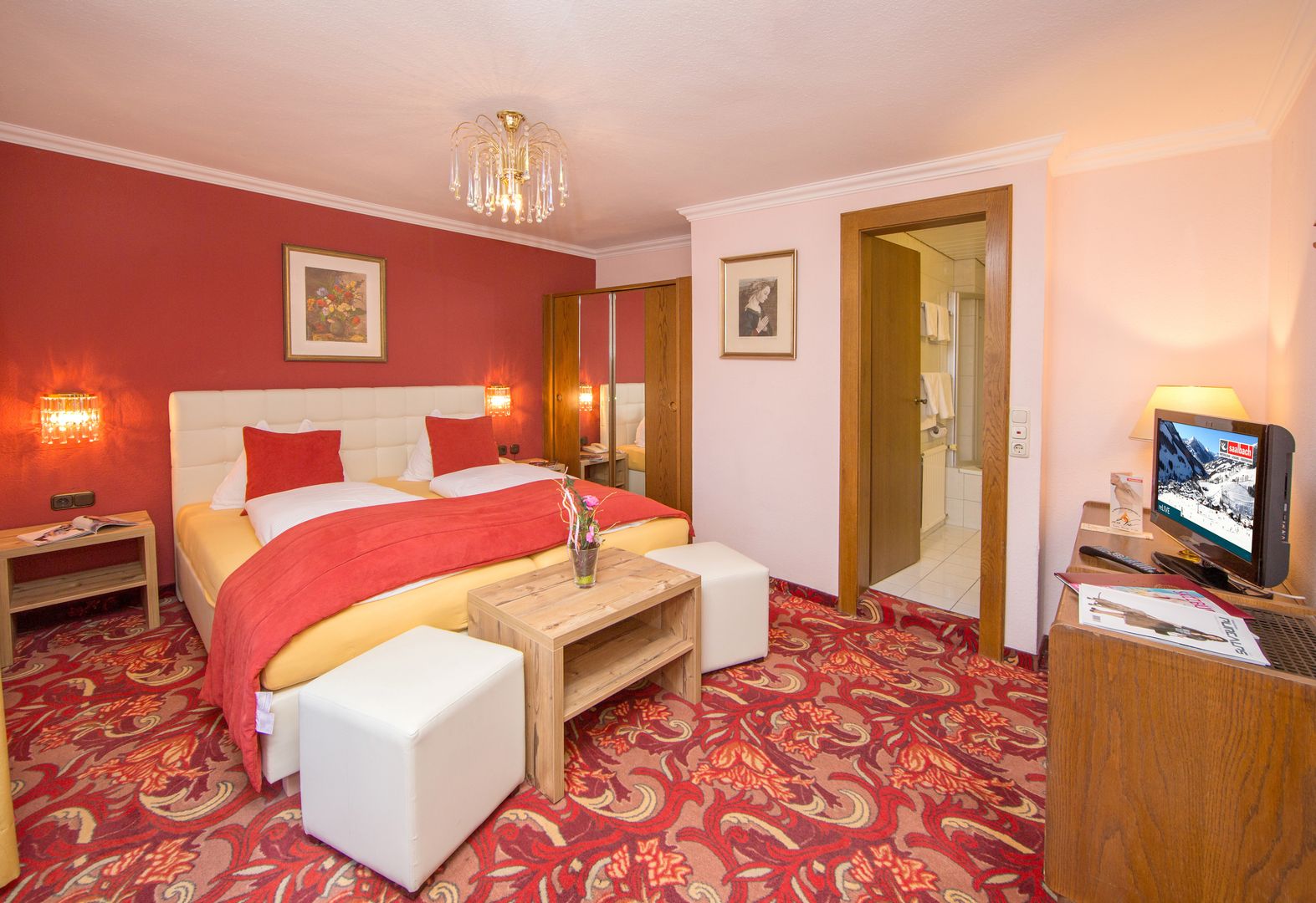 Komfortní čtyřhvězdičkový hotel se nachází na ideálním místě v centru Saalbachu s řadou kaváren, restaurací a nákupními možnostmi. K lanovce SchattbergXpress se dostanete už po asi 50 m, lanovku Bernkogel a nejbližší běžeckou stopu najdete už po cca 100 m. Bezplatný skibus stojí přímo u domu. Ubytování se skládá z hlavní a cca 20 m vzdálené vedlejší budovy. K vybavení patří vstupní hala s možnostmi k posezení, recepcí s trezorem (v ceně), Wi-Fi (v ceně), výtah, lounge, společenská místnost a bar s občerstvením, hotelový bar, veřejný bar, salónek, tři různé restaurace a lyžárna se sušákem na lyžáky. Bezplatná parkovací místa a zpoplatněná parkovací garáž jsou tu také (dle dostupnosti). Wellness zařízení s krytým bazénem (otevřeno 07:00 - 19:30 hod.), parní lázní, saunou, vířivkou a relaxační místností můžete užívat zdarma. Masáže a kosmetické procedury si můžete dopřát za poplatek, na procedury obdrží hosté slevu 10 %. 1x týdně je nabízena živá hudba. Pokoje V typicky venkovském stylu zařízené pokoje mají sprchu s WC, kabelovou TV, Wi-Fi (v ceně), rádio, telefon, trezor (v ceně), malou lednici, kosmetické zrcátko, fén na vlasy a u některých balkon. Stravování V ceně zahrnutá polopenze obsahuje bohatou snídani formou švédských stolů se studenými a teplými pokrmy a show-cooking. Večer je servírováno čtyřchodové menu na výběr (3 hlavní chody na výběr, z nichž jeden je vegetariánská alternativa) a bufet s předkrmy a saláty. Na vyžádání je možné i vegetariánské jídlo. 1x týdně je pořádána slavnostní večeře. Vánoční večeře na Štědrý večer a silvestrovská oslava jsou již v ceně. Dětem je nabízeno speciální dětské menu (částečně za poplatek).