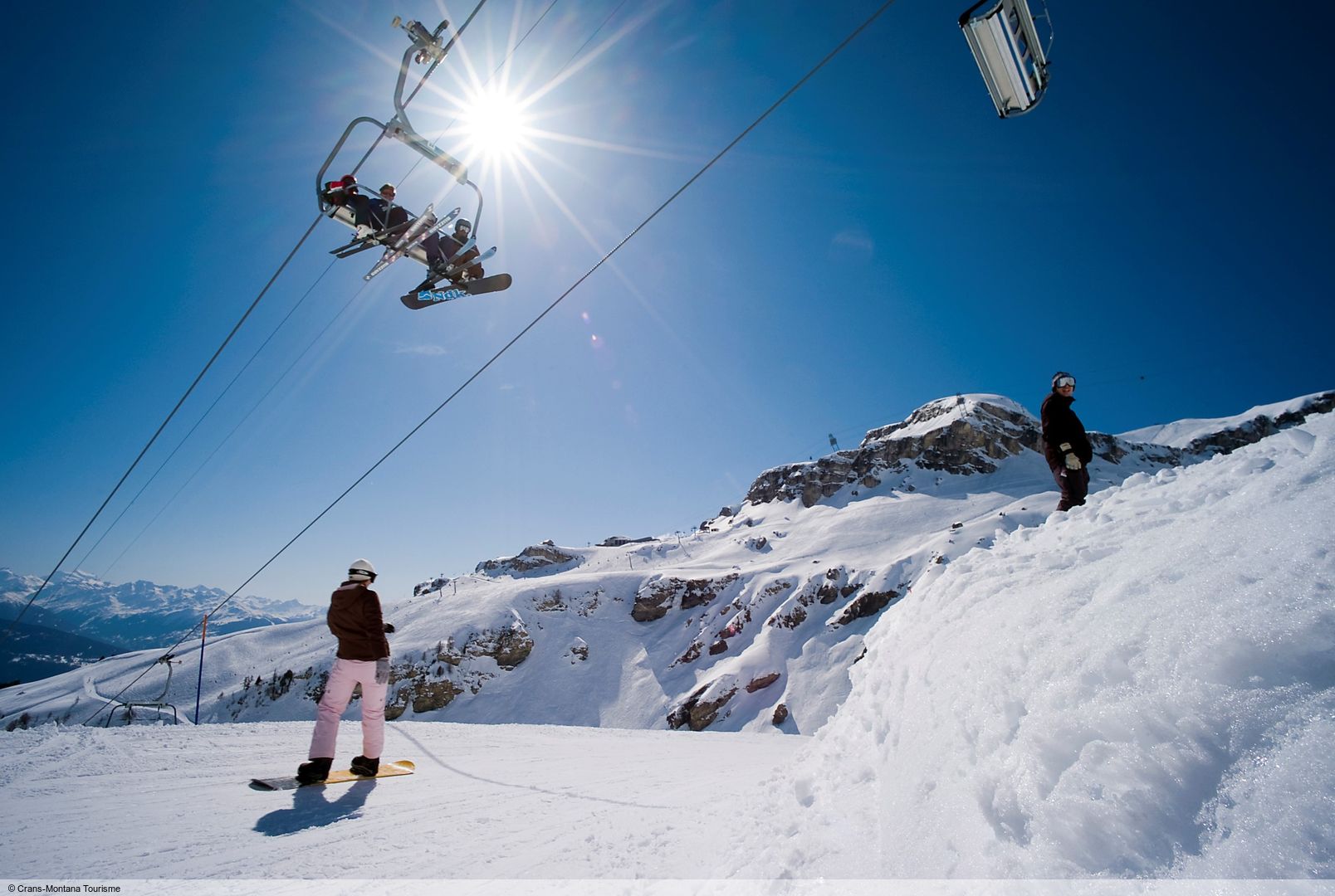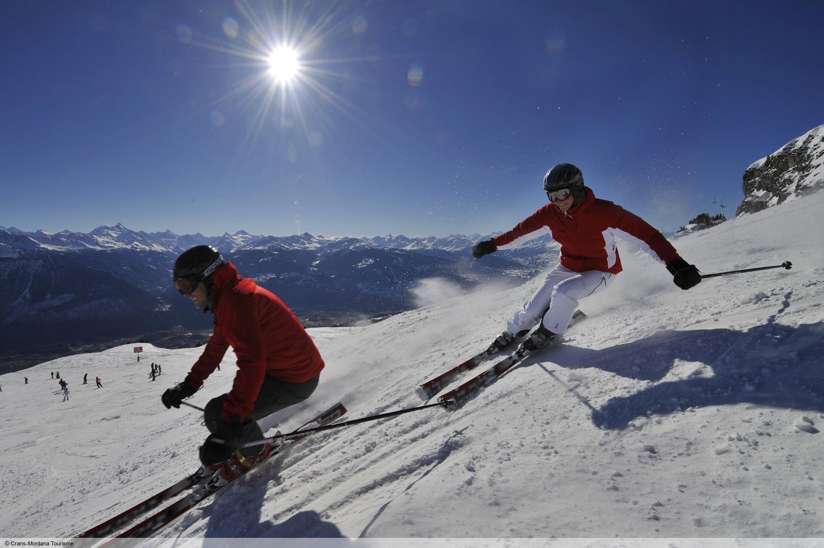 V Crans-Montaně na vás čeká 140 km sjezdovek, které dobře obsluhuje 24 vleků. V nadmořské výšce od 1 500 do téměř 3 000 metrů nabízí Crans-Montana milovníkům lyžování a snowboardingu rozmanité lyžařské středisko, které je přehledně rozděleno do tří úrovní. Na pozadí impozantních vrcholků Valais je možné spatřit i Matterhorn a Mont Blanc.Lyžařské středisko se nachází pod ledovcem Plaine Morte a hýčká své hosty upravenými sjezdovkami a četnými zasněžovacími zařízeními. Začátečníci zde najdou dobrou oblast s mírnými kopci a cvičnými vleky, zatímco sjezdovky na Chetseronu nebo Petit Bonvin nabízejí středně pokročilou úroveň.Nejdelší sjezdovka v regionu, 12 km dlouhý sjezd z Plaine Morte do Les Barzettes, je doporučován zdatným carvingovým lyžařům. Pokud si chcete vyzkoušet heliskiing, je Crans-Montana také místem pro vás. Četné možnosti freeridu a Snowpark u kabinkových lanovek Grand Signal a Crans-Cry d'Er nenechají nic náhodě ani pro ambiciózní lyžaře.