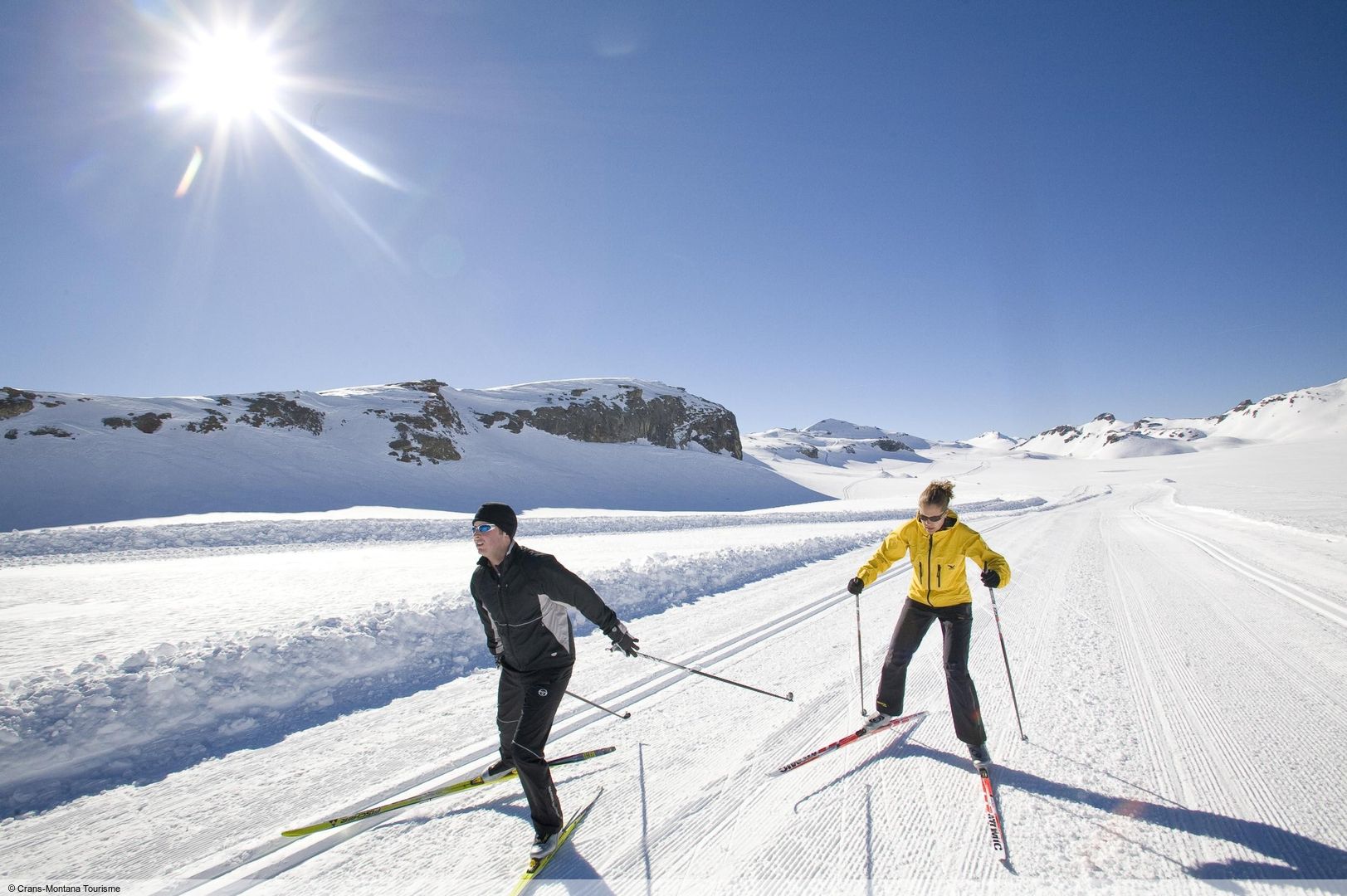 V Crans-Montaně si milovníci běžeckého lyžování mohou užít síť přibližně 84 km tratí v relativně rovinatém terénu slunné výšiny. Většina tratí pro běžecké lyžování je středně náročná.Nejdelší tratí pro běžecké lyžování je cca 7 km dlouhá golfová trasa. Na nenáročné vysokohorské trase pro běžkaře Plaine Morte v nadmořské výšce 3 000 m se můžete kochat nádherným horským panoramatem a klouzat se po ní v klidném tempu. Idylická jezera lze také nádherně objet. Za využití tratí pro běžecké lyžování se sice platí malý poplatek, ale rozhodně se vyplatí!