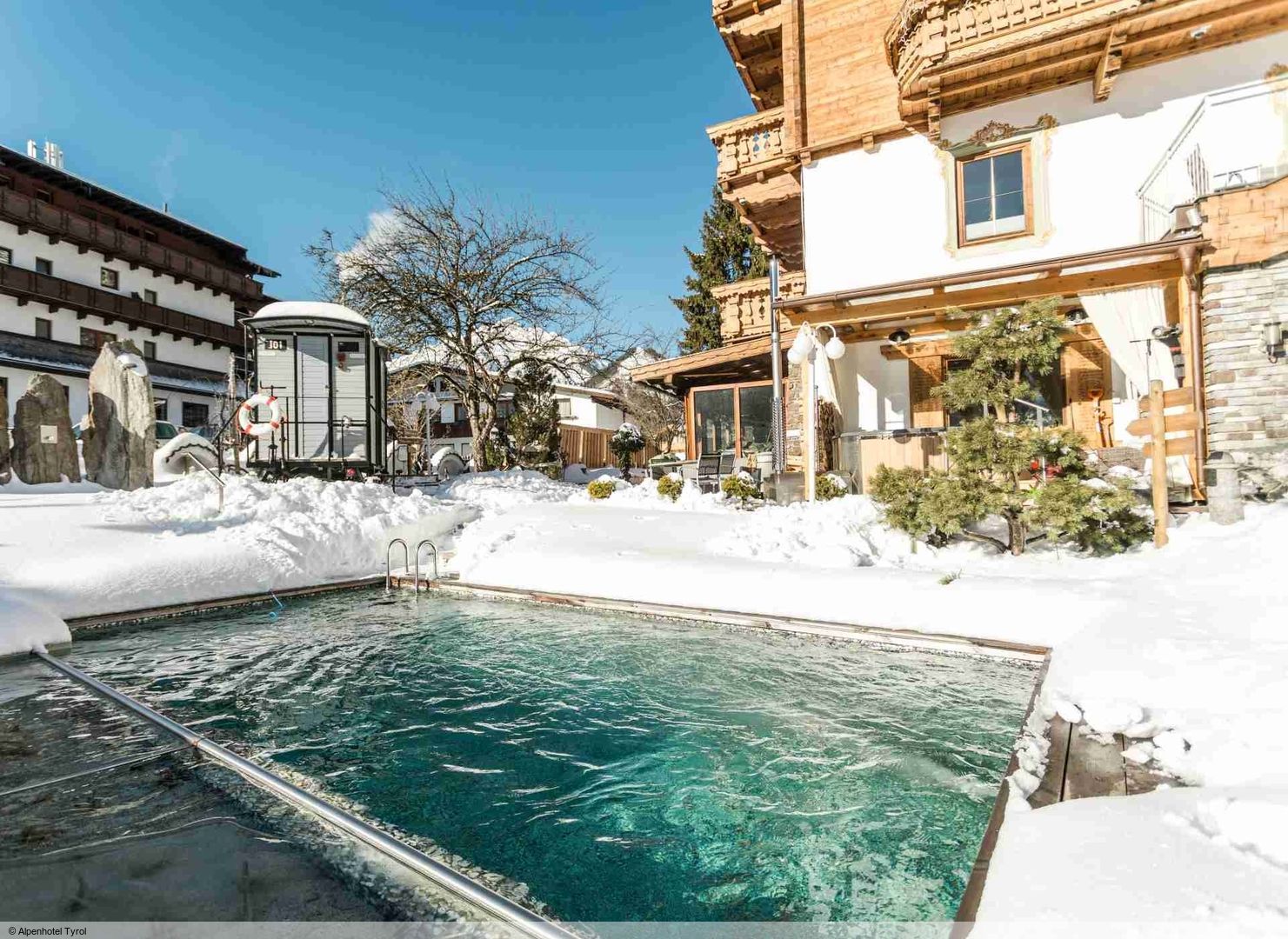 Poloha Moderní čtyřhvězdičkový Alpenhotel Tyrol se nachází cca 900 m od centra Pertisau. Nástup do lyžařského střediska je možný prostřednictvím lanovky Karwendel, která je asi 500 m daleko. Běh na lyžích je možné na nedaleké síti běžeckých tratí. Sportovní aktivity si můžete užít také na sáňkařské dráze cca 500 m od hotelu. Skibusy zastavují přímo u ubytování. Vlakové nádraží Jenbach je vzdáleno asi 11,1 km. První možnosti nákupu jsou cca 850 m daleko a nejbližší kavárny a restaurace cca 80 m. Vybavení K vybavení útulného hotelu patří recepce (10:00-12:00, změny vyhrazeny), Wi-Fi, společenská místnost, výtah, místnost na snídaně a hotelový bar Gatsby-Lounge (samoobslužný). Své zimní sportovní vybavení si můžete uschovat v lyžárně se sušákem na lyžáky. Na místě jsou k dispozici parkoviště a přístřešek pro auta - dle dostupnosti. Wellness V jedinečném wellness zařízení se nachází celkem 8 zážitkových saun. Ve venkovním prostoru najdete vagonovou saunu, kontejnerovou saunu, kabinkovou lanovkou s integrovaným infračerveným panelem, arktický box, black box saunu a 24hodinový venkovní infračervený box, vyhřívanou vířivku (za popl.) a přírodní bazén. Kromě toho můžete ve vnitřním prostoru využít borovou saunu, bio sennou saunu a relaxační místnosti. Za poplatek jsou k dispozici kosmetické procedury a masáže. Zábava Ubytování nabízí sportovní zázemí, například posilovnu. Během pobytu máte možnost si dle dostupnosti zapůjčit sněžnice (za popl.) a sáňky (za popl.). Stravování Při objednávce pokojů se snídaní je ve stravování zahrnut nápoj na přivítanou a bohatý a rozmanitý snídaňový bufet s regionálními produkty, cereálním koutkem, müsli koutkem, chlebem, marmeládou, medem a vejci. Na vyžádání jsou k dispozici také bezlaktózové, bezlepkové a vegetariánské alternativy.