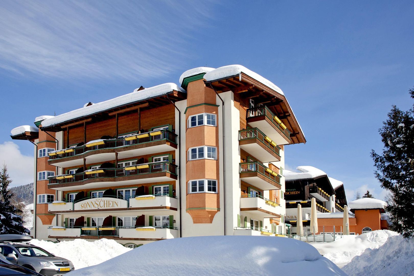 Moderní čtyřhvězdičkový Hotel Sonnschein leží uprostřed krásného Wildschönau, cca 800 m od centra Niederau a asi 700 m od lanovky Markbachjochbahn. Nejbližší zastávku skibusu najdete po asi 400 m. Nástup na běžecké tratě je možný po zhruba 300 m a zimní cesty jsou dostupné přímo od hotelu. K vybavení rodinného hotelu, který disponuje hlavní a novostavbou (jsou spolu propojené) patří salónek s recepcí a krbem, výtah, Wi-Fi, restaurace, útulný bar, herna pro děti a také lyžárna se sušáky na lyžáky. Bezplatné parkoviště je k dispozici u domu (dle dostupnosti). Wellness zařízení, které je zdarma, má krytý bazén s protiproudem, saunu, parní lázeň a relaxační místnost. Zdarma můžete využít i domácí posilovny. Za poplatek můžete využít solárium, vířivku a různé masáže. Na místě obdržíte kartičku pro hosty Wildschönau Card, s níž získáte mnoho slev (změny vyhrazeny, viz informace na místě). Pokoje Příjemně zařízené pokoje mají koupelnu nebo sprchu s WC, satelitní TV, Wi-Fi, telefon, rádio, bezpečnostní schránku, fén na vlasy a některé mají lednici a některé také balkon. Ubytování můžete být v hlavní nebo ve vedlejší budově, dle typu pokoje. Stravování V ceně zahrnutá polopenze se skládá z bohaté snídaně formou švédských stolů (studené a teplé pokrmy) a také večerního menu o čtyřech chodech s možností výběru a se salátovým bufetem. Pro malé hosty je připraveno dětské menu. Na Vánoce a Silvestra je připraveno speciální sváteční menu (v ceně).